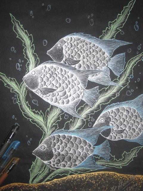 His works are done in pencil and coloured markers mostly, and not the usual acrylics or oils popular with Jamaican art. Some of his works come alive when he renders them in silver on black paper.