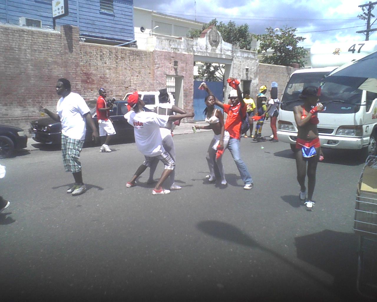 Along East Queen Street past Central Police Station some Jamaicans joined in the downtown leg of the Carnival revelry.